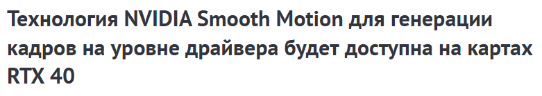 >>7547609 Я вообще не видел чтоб кто-либо юзал smooth motion. Это по сути генерация в приложениях которые под генерацию не заточены. Представляю какой там пиздец. Это первый момент. Второй момент что не заточены под генерацию обычно старые игры, там, где она нахуй и не нужна потому что блядь они старые и по любому в 100+ кадрах работают.