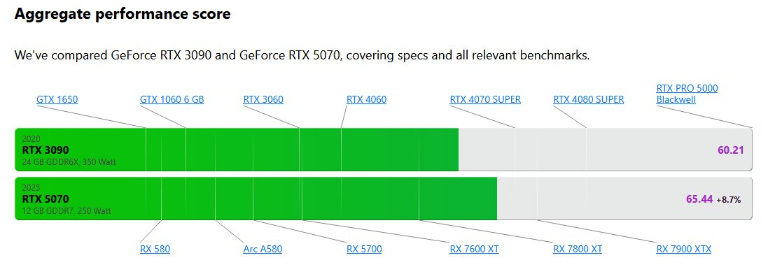 >>7547423 Производительность зависит от количества фпс на экране, мне похую на твои процессоры если у меня на 5060ти на пару фпс ниже чем у 4070. 4070 может куберпунк 4к 100+ фпс на ультрах с пастрейсом? Очевидно что нет, то есть она даже слабее чем 5060ти.