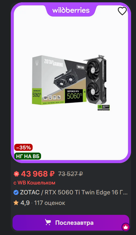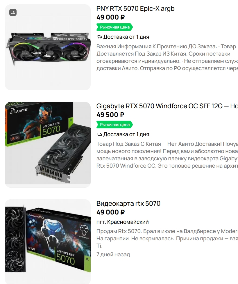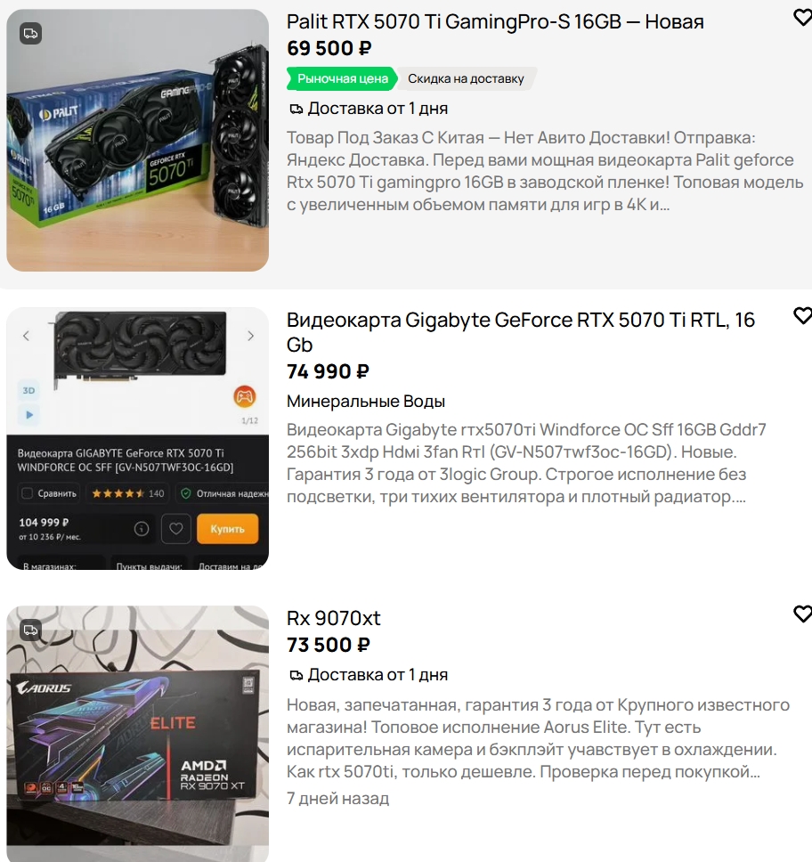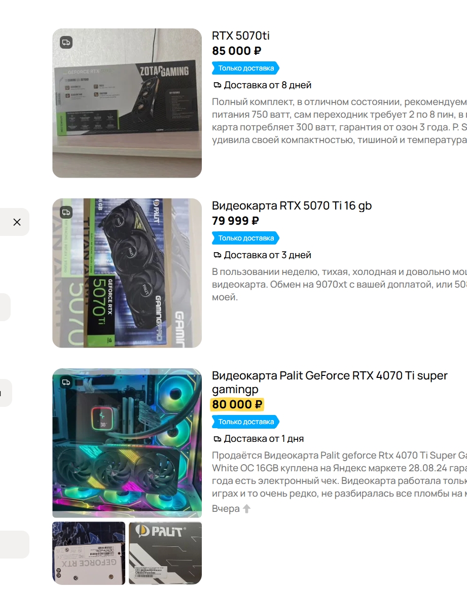 Зашел почитать про видюхи, в итоге читаю про моники. Есть кто живой, купивший какую-нибудь 5070ti на авито в том самом магазине за 75к с ожиданием 5 недель не будучи опрокинутым?