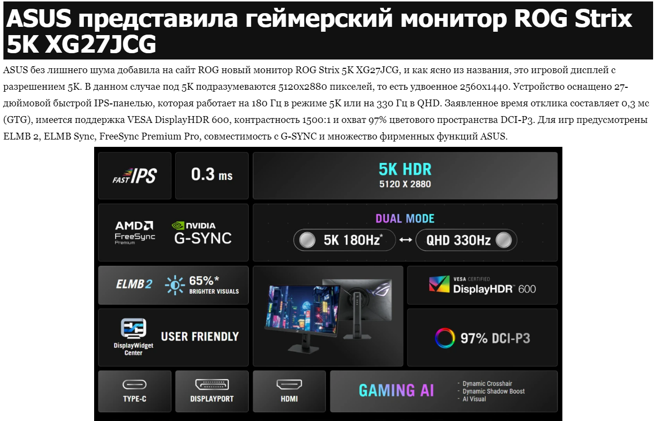 Да и рынок 5К моник не развит ещё нормально. Сколько там моделей с нормальной герцовкой? Одна штука, две? Ещё и с ценником как у крыла самолета