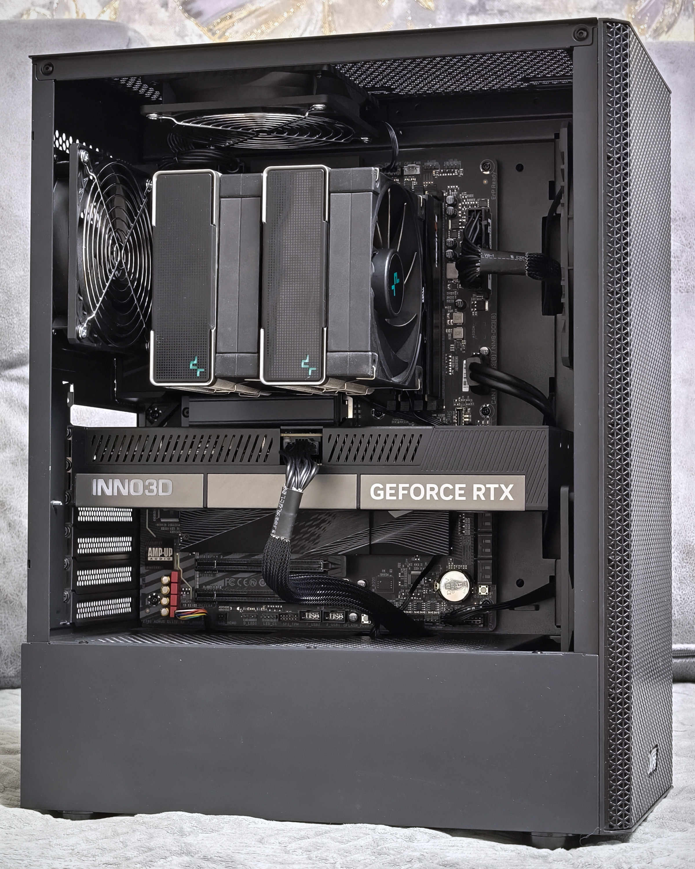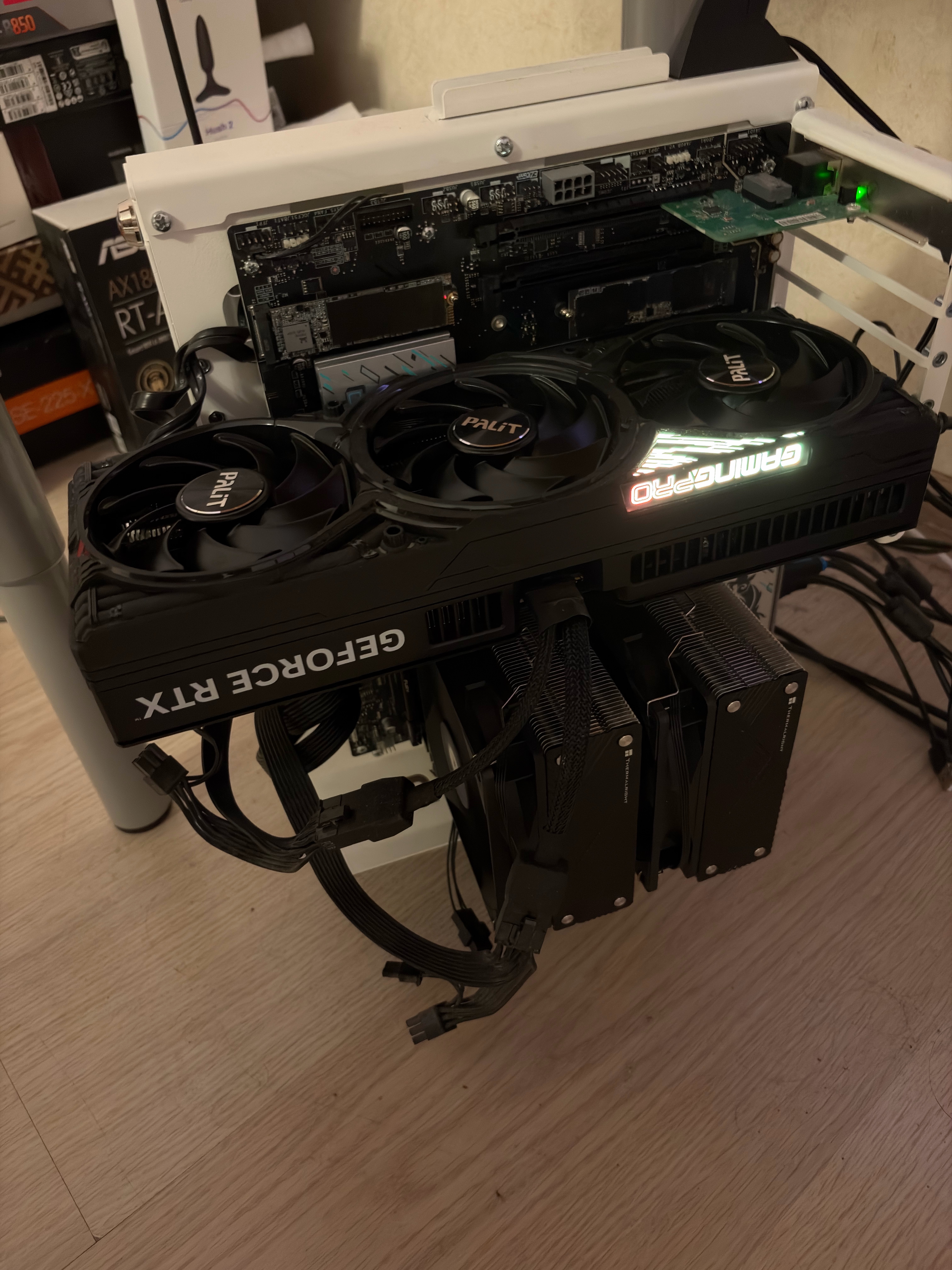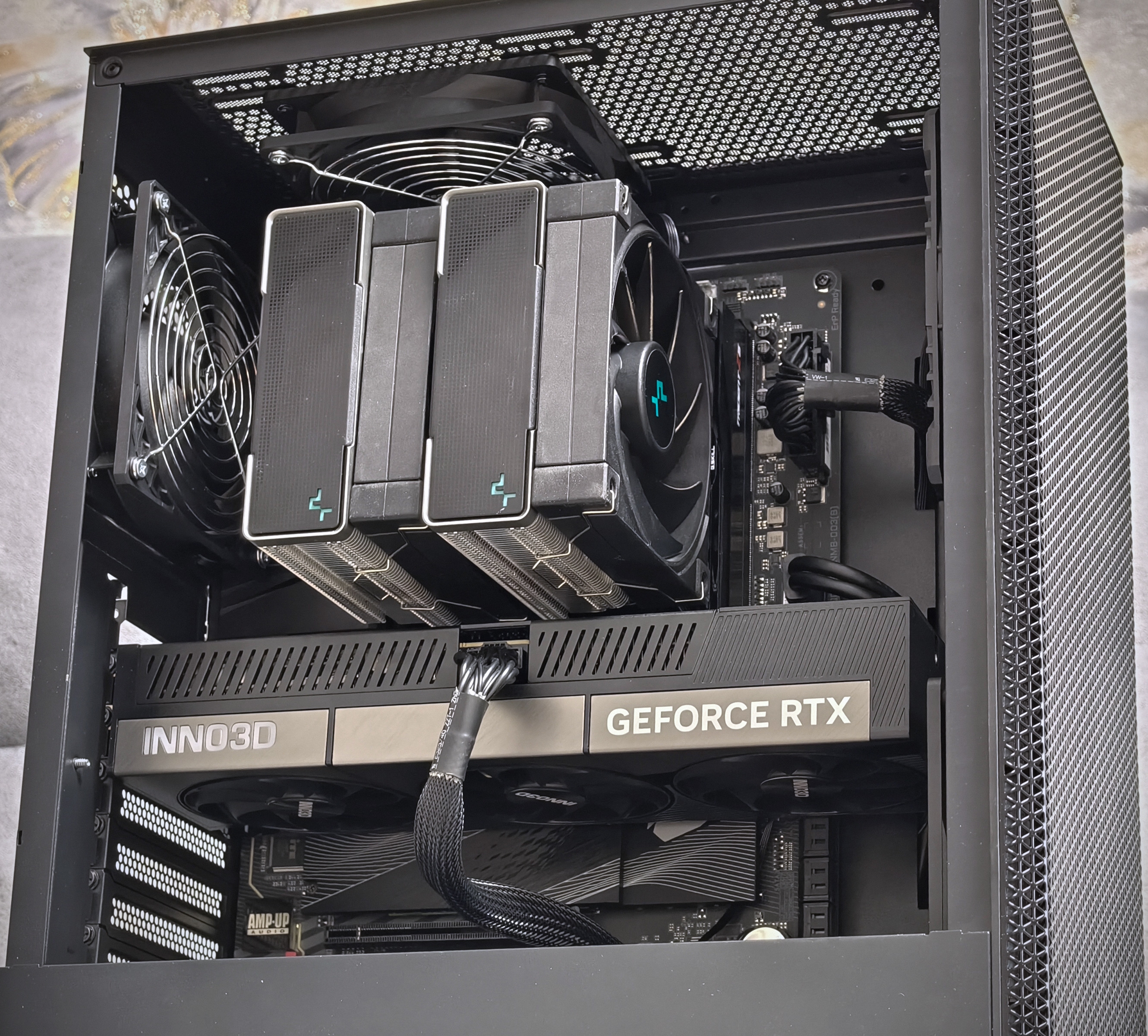 >>7596190 У тебя за левой стенкой нахуй есть куча места, всё туда утягивай, вентиляторы разверни так чтобы выход провода был со стороны дырки наверху которая над материнской и провода туда прячь. Ты хоть немного изучи информацию бля.