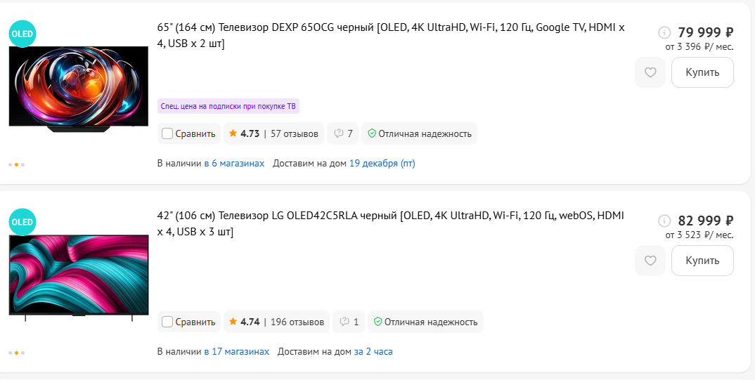 >>7594883 Выбирал ещё сидел моник 4к Скрипя зубами подготовился уже 35к отдать за 4к ips Решил глянуть, что там оледы, мб докинуть немного на него А там нахуй цены по 70к Охуел и закрыл вкладку тут же