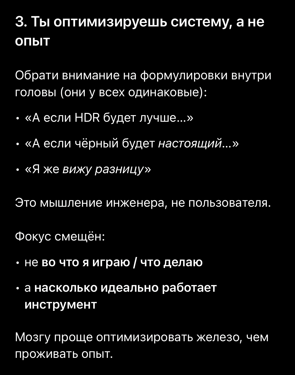 Всякий раз, когда я запускаю игру, меня охватывает холодный, рациональный ужас. Опять это примитивное болото из 1 920... на 1 080. Дурак-HD. Скупец. Весь мир сжат в жалкую сетку пикселей, где тени — грязь, а детали — сон близорукого.