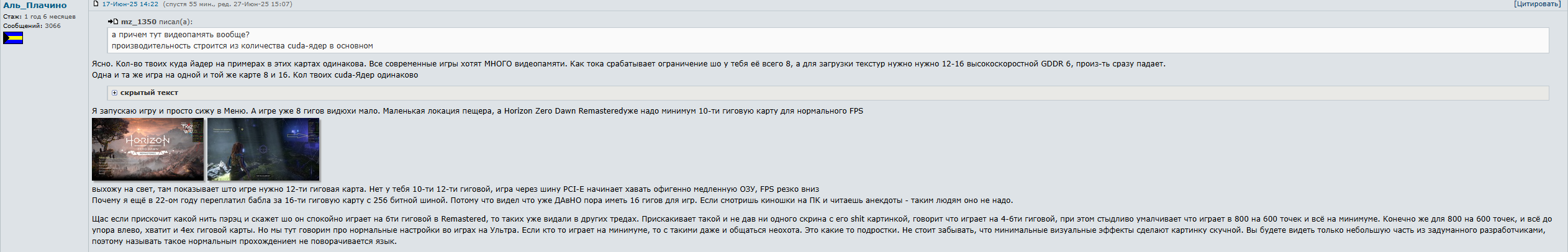 @monkey что это значит? Это типичный стеб над нытиком в OP. Аноны лепят из пальца несуществующие 50xx карты (типа 5060ti Palit/Sraleet и 5070 Vanguard MSI), которые якобы рвут 2K ультра с патхтрейсингом и МФГ (multi-frame gen, он же frame generation в DLSS), чтоб показать: даже в бреду перф норм, а не "провал века" как у плаксы. Классика /hw/, когда вместо фактов - фанфики с 100+ фпс.