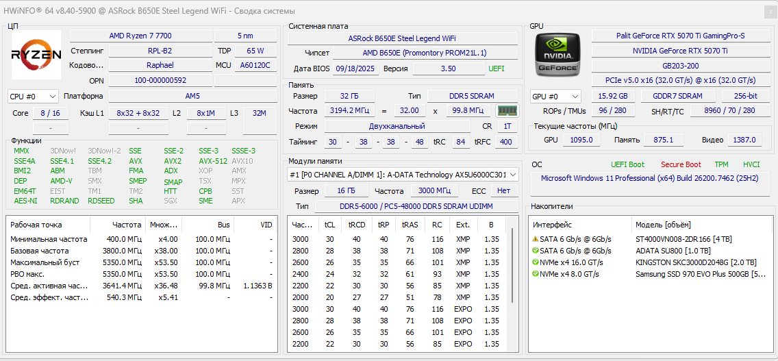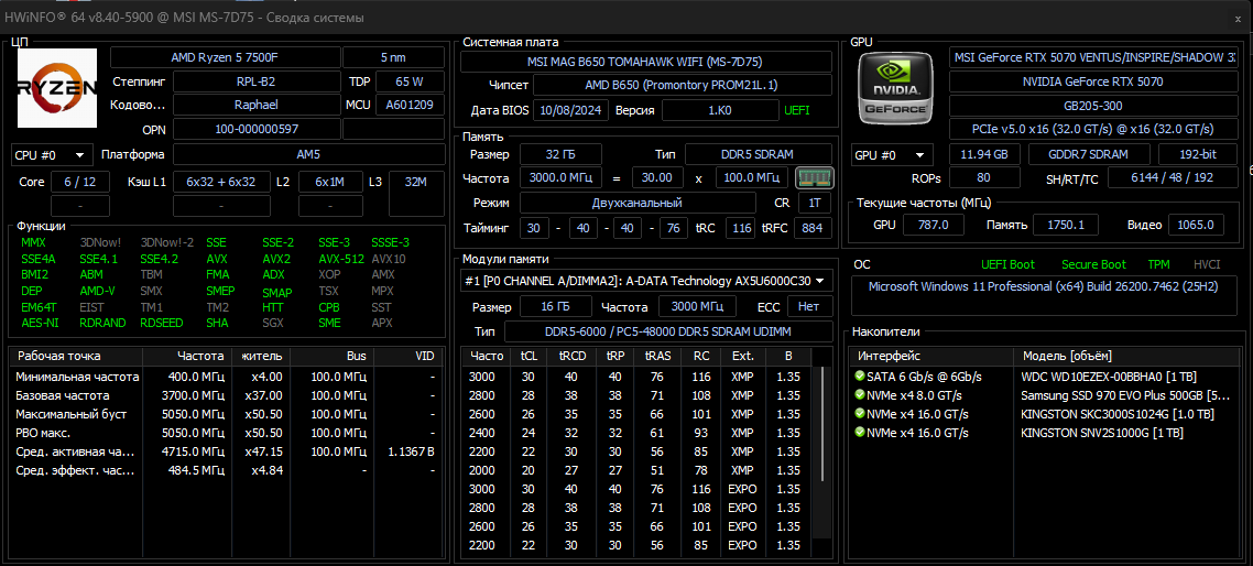 Пикрил - моя пека, собранная недавно. Комплектующие подбирал в первый раз, скорее всего насобирал говна. Про видюху не пишите, знаю, хуета. На частоту памяти не обращайте внимания, хвинфо бай дизайн отображает половину, на самом деле 3200