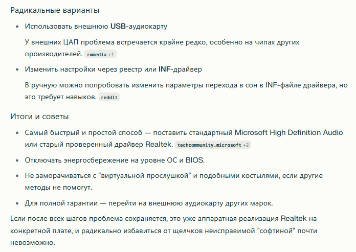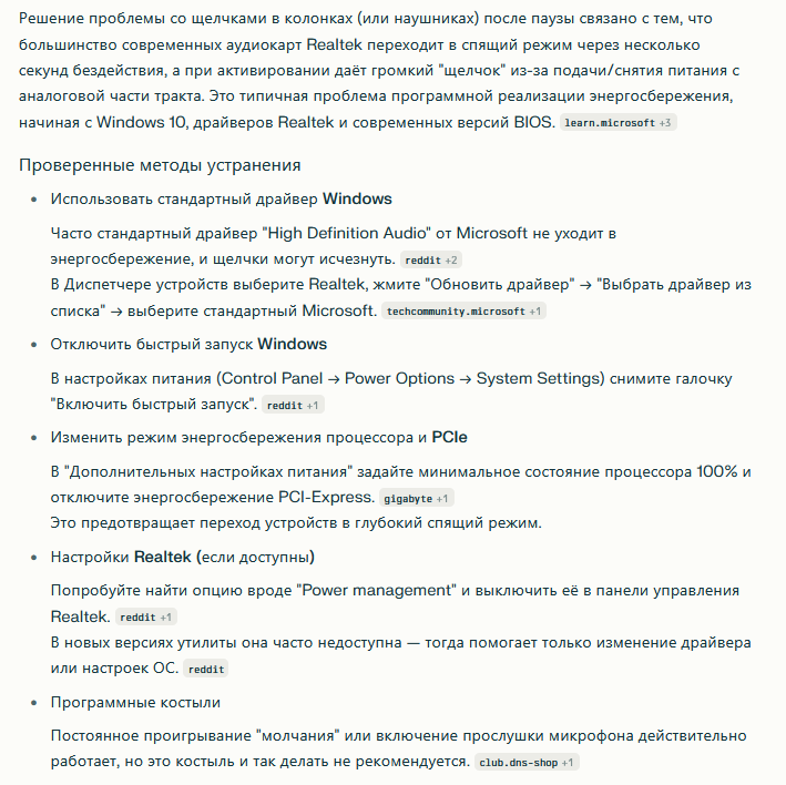 - тчательно проверил все провода на предмет скрутки перехлеста итд итп. - заменил дрова на материнке - менял способ подключения к материнке - подрубал по блютусу - включал в соседней комнате из другой розетки от телефона по блютусу