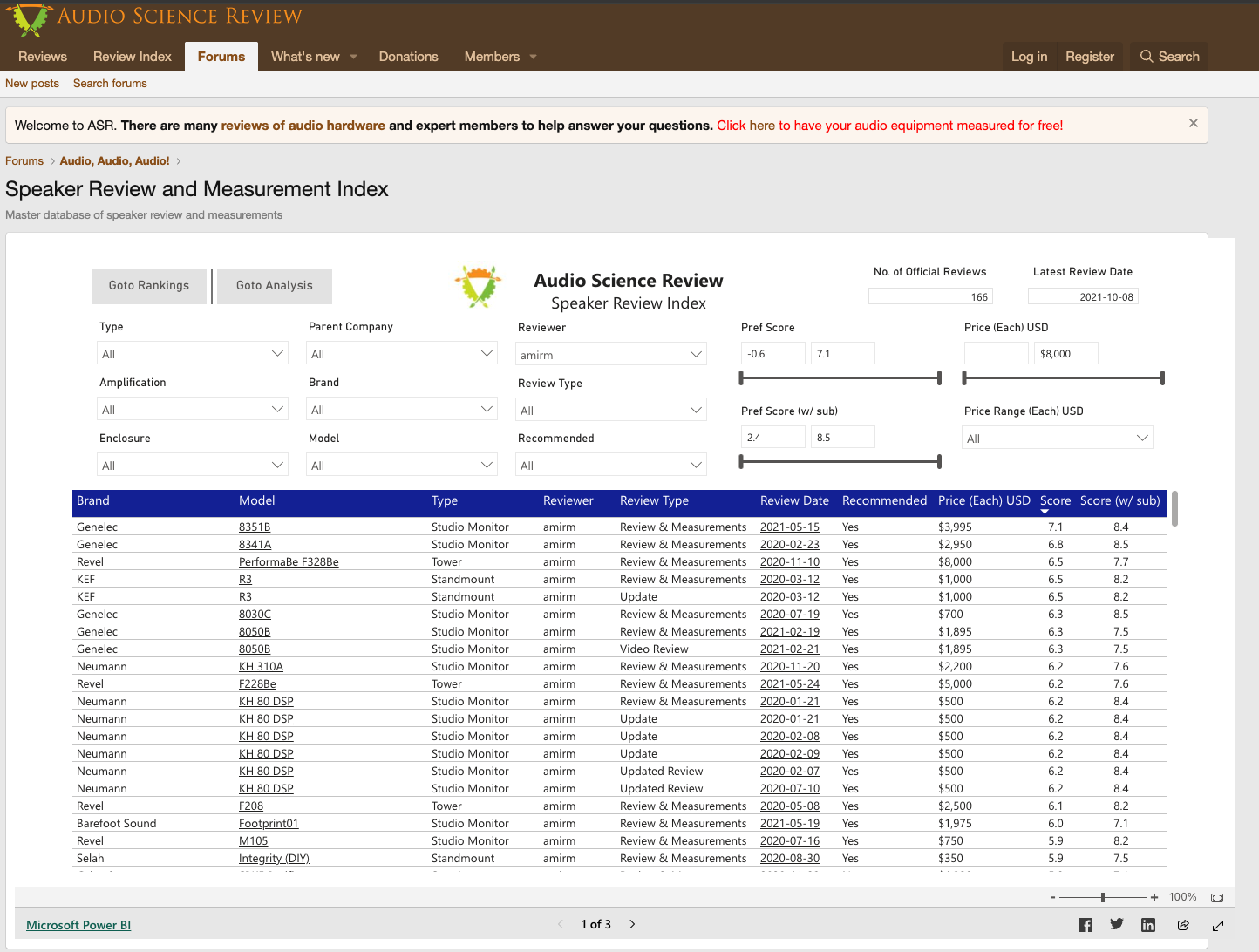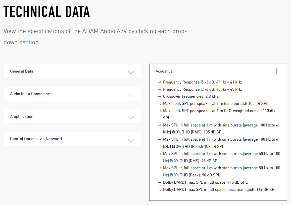 Качество собственно акустики в основном определяется ровностью АЧХ (frequency response) и равномерностью направленности (directivity). Хорошая система будет иметь неравномерность АЧХ порядка +-1,5 дБ, удовлетворительная +-3. Хороший график направленности - ровная полоса шириной +-60 градусов, плавно спадающая по краям. Пример околоидельных графиков реальной системы: https://imgur.com/a/NIvnjQE Имей в виду: манипуляциями с масштабом, сглаживанием, усреднением плохую акустику можно представить в более выгодном свете, этим пользуются нечестные на руку производители и обзорщики. Тем не менее, полное отсутствие замеров ещё хуже, и акустику, на которую нет измерений, рассматривать к покупке не стоит.