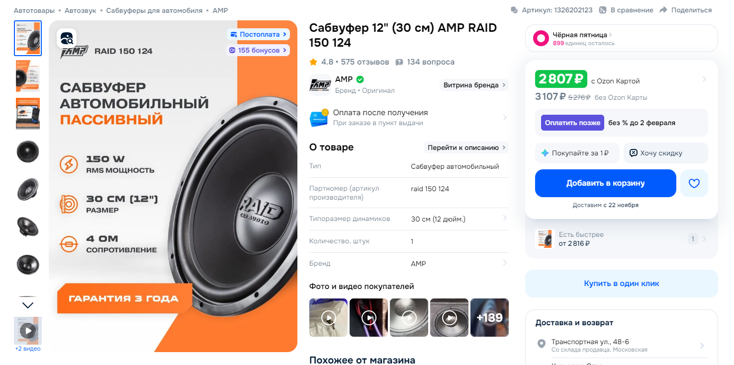 >>7599261 Сделай сам. Возьми AMP RAID 150 124, купи корпус к нему (на озоне есть готовые прям под него), плату усилителя на TPA3255 с мостовым режимом и вот тебе сабвуфер. Сам пользуюсь, бас четкий, хорошо вписался в мою акустику. Стандартную большую комнату в квартире трясет будь здоров, если нужна долбежка.