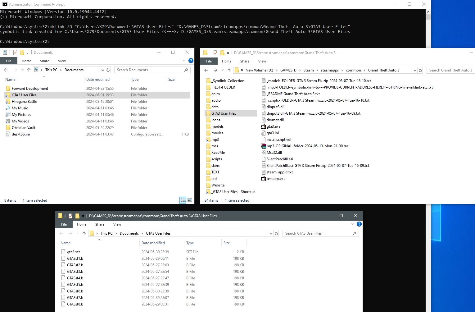 Ещё некоторые игрушки любят свои сэйвы/настройки/реплеи в Документы кидать (из-за чего всё это с завидной регулярностью проёбывается при переездах), а особо охуевшие норовят в Документах разместиться целиком. Приходится выселять пикрилейтедом ( символические ссылки )