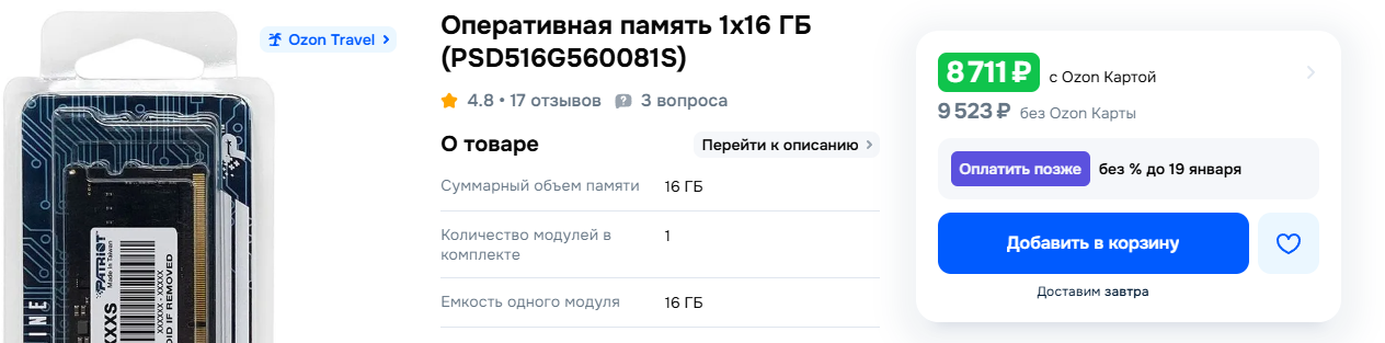 >>7089445 Какую-какую. Надёжную. Цена - лишь бы не больше 20к. Две плашки SO-DIMM для ноута, ddr4, каждая по 16 Гб, общая ёмкость 32 Гб. А. Частота 3200 МГц.