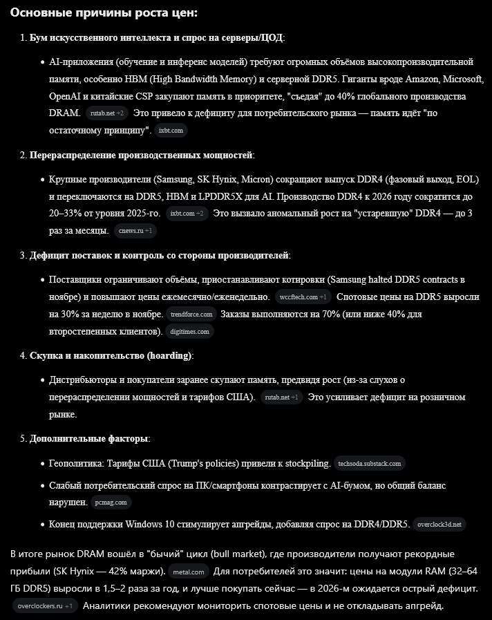 >>7565686 В след. году пздц полный с ценами будет, затянется пишут минимум на 2 года, то есть ещё весь 2027 затронет, +видюхи тоже подорожают. Кто не успел сейчас обновить себе ПеКарню... чтож, прежних цен ещё долго не будет, соболезную.