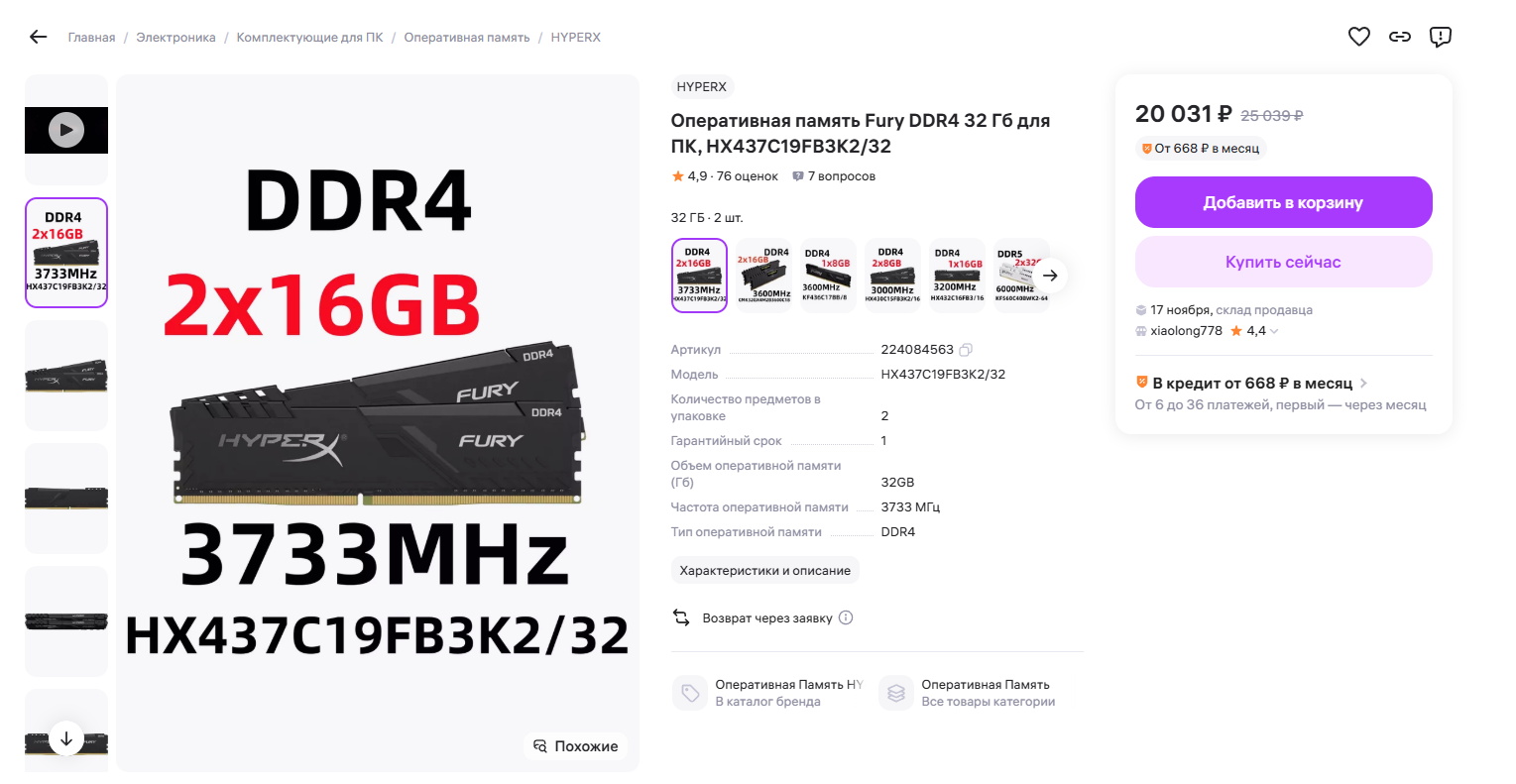 Сап, двощ, посоветуйте планки памяти. И желательно где купить, чтобы проблем не было, если вдруг надо будет вернуть. В целом нужен такой наборчик: 2 планки по 16гб ddr4, чтобы держали частоту 3600 хотя бы.