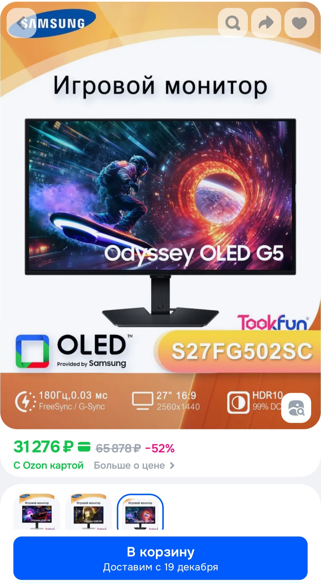 >>7599475 Самый дешёвый в ДНС, со скидочкой ещё, 240 герц, qd-olde 4 поколения, ещё и диагональ как я и хотел Что-то при +/- такой же цене в 32" и со старым поколение qd-oled