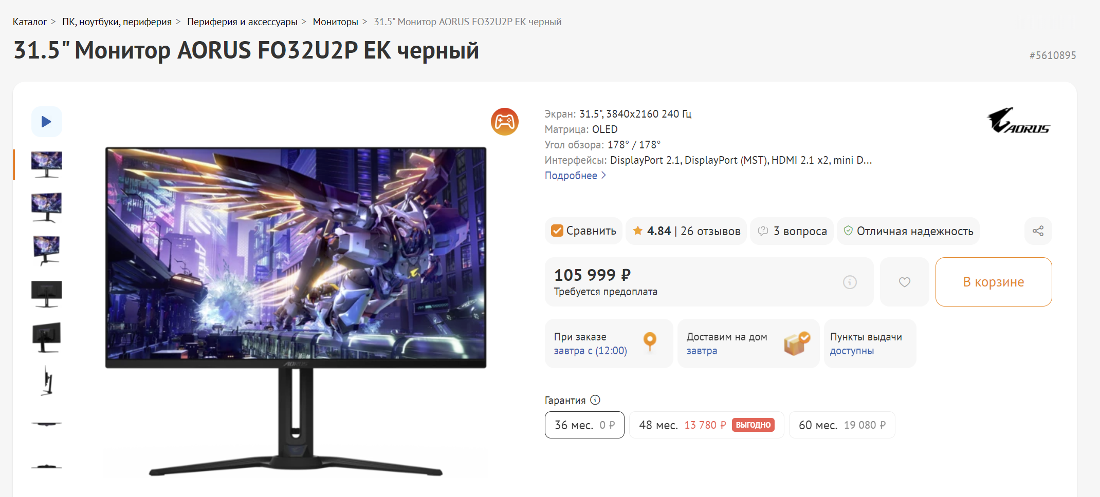 У меня ещё есть второё 4К монитор на ips (без минилед) Купил три дня назад, лол Но в итоге появилась обсессия взять oled, подумал, раз с 1080p обновляюсь, то всё-таки стоит дожать до оледа, тем более появились сейчас внезапно деньги ips 4K оставлю, будет 3 моника в итоге, кайфово