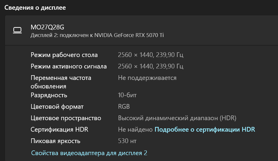 >>7596070 Я через оверлей никогда не включал. Я врубил пикрил в глобальных настройках (пик1). Потом еще вручную поставил в настройках конкретной игры, чтоб уж наверняка (пик2). Ну и конечно же в мониторе + в вин11 не забудь включить хдр, сделай калибровку (обязательно) и отключи в винде автокоррекцию цвета (пик3)
