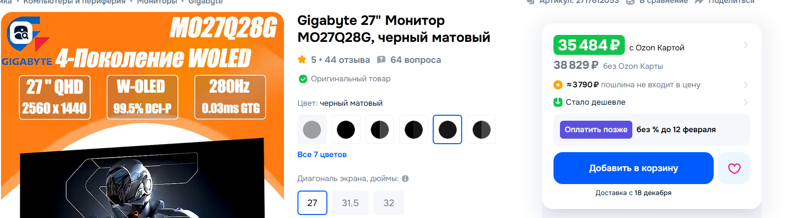 >>7595953 Убедил, беру.Есть на озоне проверенные продавцы, у которых уже брал местный анон? Сейчас там 23 минимум, вряд ли подешевеет, буду брать, потом отпишу сюда сколько битых пикселей.