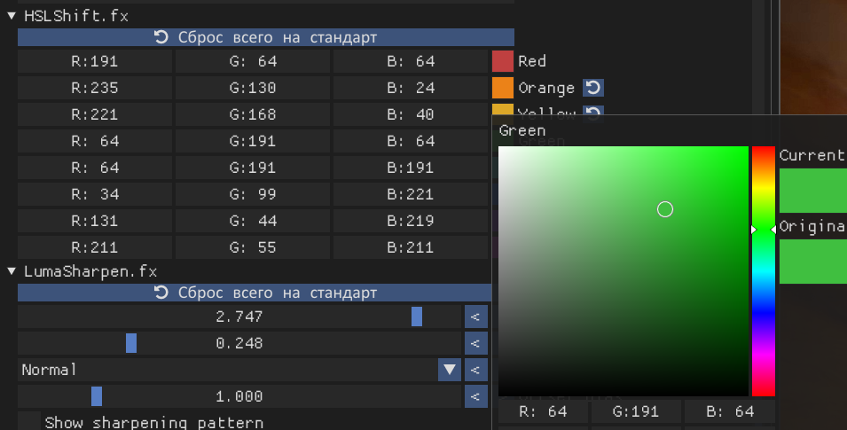 >>7595753 А какие натсройки? У меня такие>>7592269 Что бы насыщенность зеленого понизить я пользуюсь шейдеров ahref в решейде там 9 цветов любой меняеш как хочешь