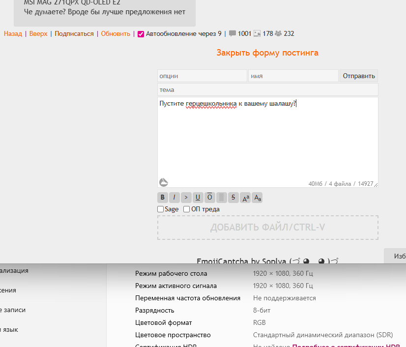 Но HDR дико пиздат да, прям совершенно новый мир открывается с ним. Ради этого обновляться стоило. В остальном на хуй монитор не нужно менять, если у вас сейчас добротный дуракхд из десятых, как был у меня ранее.