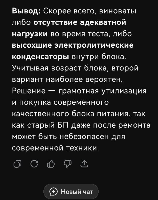 Пацаны чисто из интереса, мне починили блок питания и написали вот это. Что странное у меня он работал и кулер ебашил , у сц не работал. Блок был этот, была ли опасность для компа?