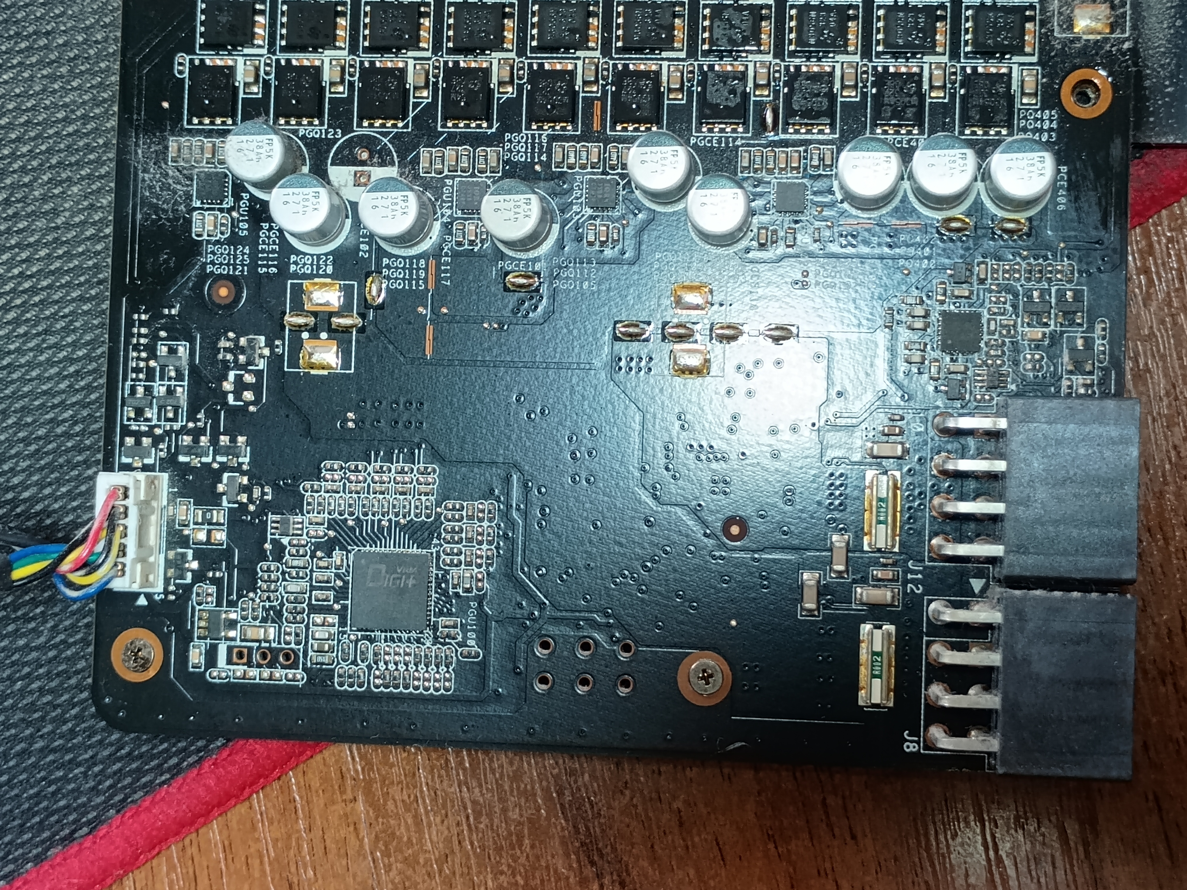 >>7316823 Типовая проблема по питанию. Пробит DrMos висящий на доп питании 12В по NVVDD. Карта уже была в ремонте по этому же месту, надеюсь это не в сервисе зафигачили эти конченые прокладки от арктиков еще и в несколько слоев