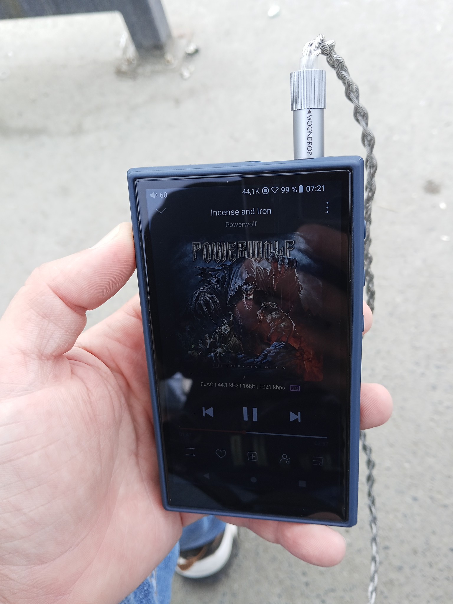 Сегодня приехал Fiio JM21, мой первый музыкальный плеер, забыл купить флешку к нему, залил по шнуру туда первую попавшуюся папку музыки. Вначале подключил свои убогие вакуумные вкладыши, ожидал большего. Затем посравнивал звук с телефоном на тех же композициях. Вроде получше, чем телефон. Затем подключил блюпуп наушники jbl, вроде неплохой звук. Может через пол годика куплю нормальные качественные проводные наушники и сравню звук с блюпупными. ШТОШ, буду теперь искать качественную музыку, mp3 256 или 192 кбит точно придется забыть.