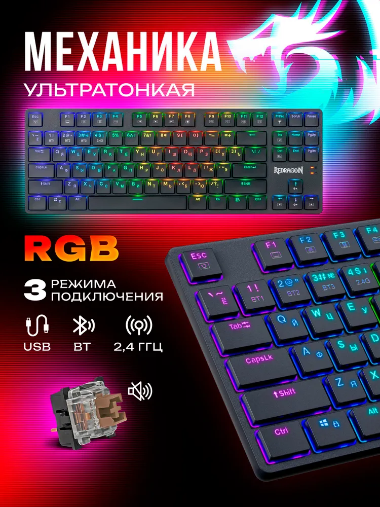 Это низкопрофильная механика, но на красных (Red) переключателях - они максимально мягкие и плавные, у самого была другая модель на них. Бери с хотсвапом (на странице можно выбрать), тогда сможешь в случае если они покажутся слишком мягкими, докупить коричневые переключатели и сам их заменить, процесс занимает от силы минут 10, и можешь заказать у них же гравировку кириллицы. Только не ведись на их развод про "смазывание свитчей", тебе и твоему родственнику это точно не нужно, особенно если учесть, что красные гатероны и так идеально плавные. Шумка тоже вряд ли нужна, только если хочется прямо гробовой тишины во время работы с клавиатурой.
