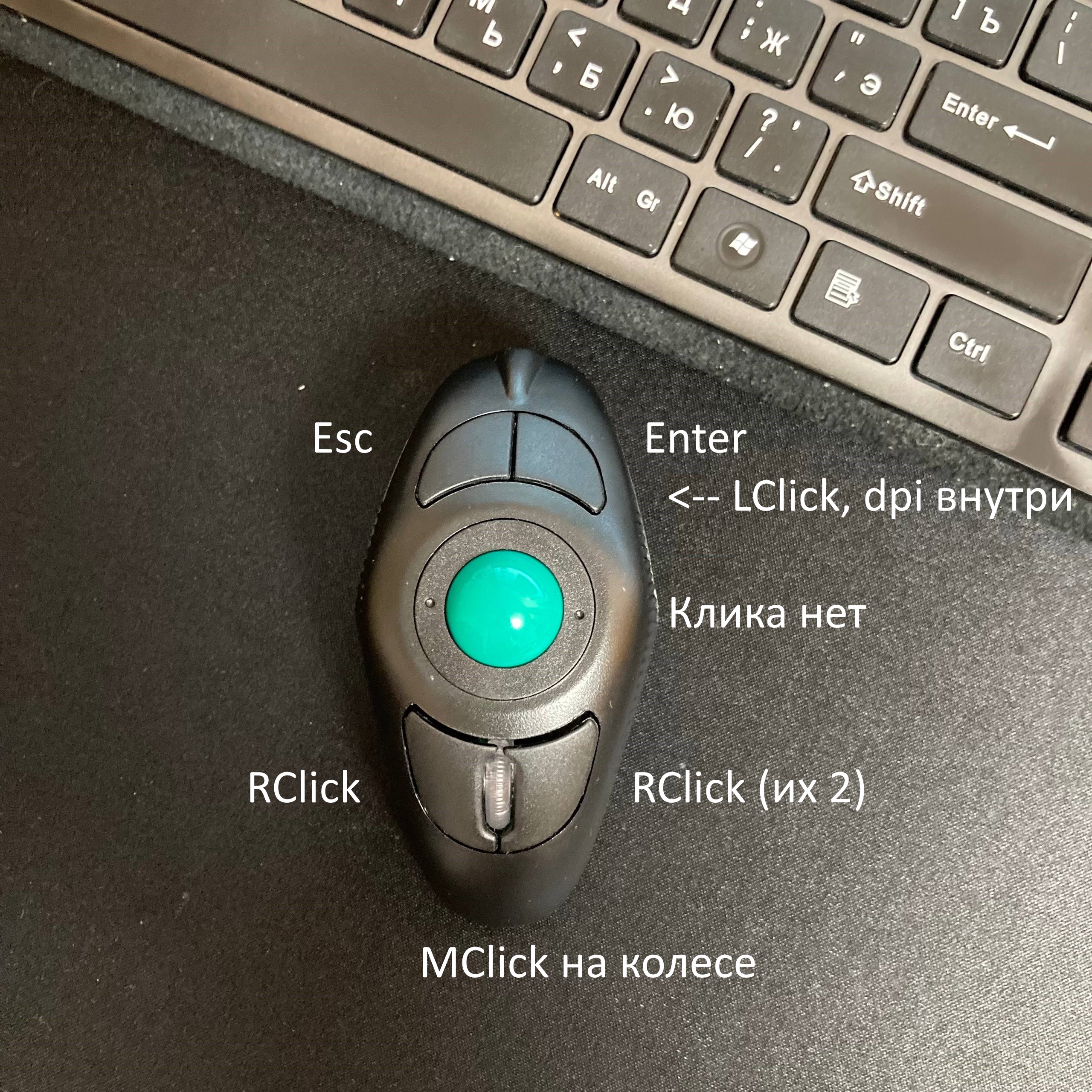 >>7456812 Вундервафля доехала наконец. Мышеанонам это вряд ли интересно, так что запощу сюда плечевикам. В целом девайс неплохой, в моей большой руке чутка маловат, но терпимо. Шарик: иногда подлипает (проблема всех шариков) или проскальзывает. Его можно крутить с инерцией. Есть 4 режима дпи, от черепахи до летать через весь экран. При черепахе инерция сильно помогает, вероятно останусь на нем. Датчик - оптика. Общее впечатление как от обычной мышки с шариком. На современное понятие - средне, с мышеоптикой не сравнить. На десктоп юзабельно, для игорей конечно нет. Сам шарик не кликает. Кнопки: фиксированы, см.пик. Левый клик только внутри. Громкость средняя, характер звука мышиный. Колесо: нажимается, но с усилием. Скролл тихий. Вообще я бы поставил колесо слева-сбоку от шарика. Корпус обычный матированный пластик. Умеет "стоять" шариком вверх вместо лежки боком. На фотках выглядит сальным, в жизни лучше. Весит как мышка. Есть еще лазер спереди, не знаю для чего он. Стоит 1500р где-то, ждал две недели. Как и планировал, положил ее под пробел. Когда надо, беру в руки - это требует определенного движения, но оно простое. Можно развалиться в кресле и держать руку на ноге - плечо не болит. В стоячем положении можно юзать как трекпад или скроллвил, но клик неудобный. В лежачем удобнее. Так шарик люфтит, но курсор от этого не дрочится. Юзаю всего час, пока отвыкаю от рефлекса схватить мышку. Плечу гораздо лучше, ну и вообще возможность откинуться, скрестить руки и лазить по окнам это довольно комфортно. Короче китаёза молодец, сделал в целом норм девайс.
