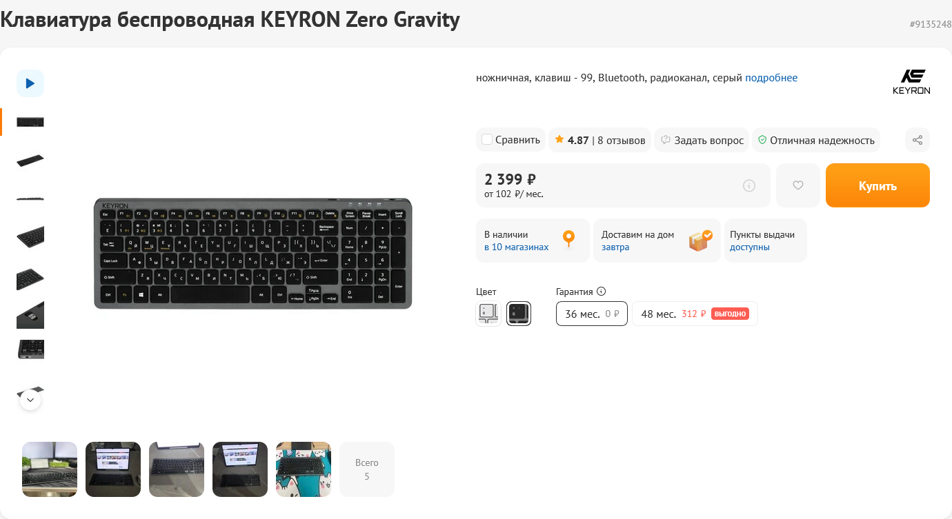 Был вчера в ашане и щупал пик, годная клава, действительно на ножницах как в описании. Наконец мои любимые 75% но на беспроводе и с ножницами подвезли. Ощущается приятно, не хуже моей основной BTC 6100C