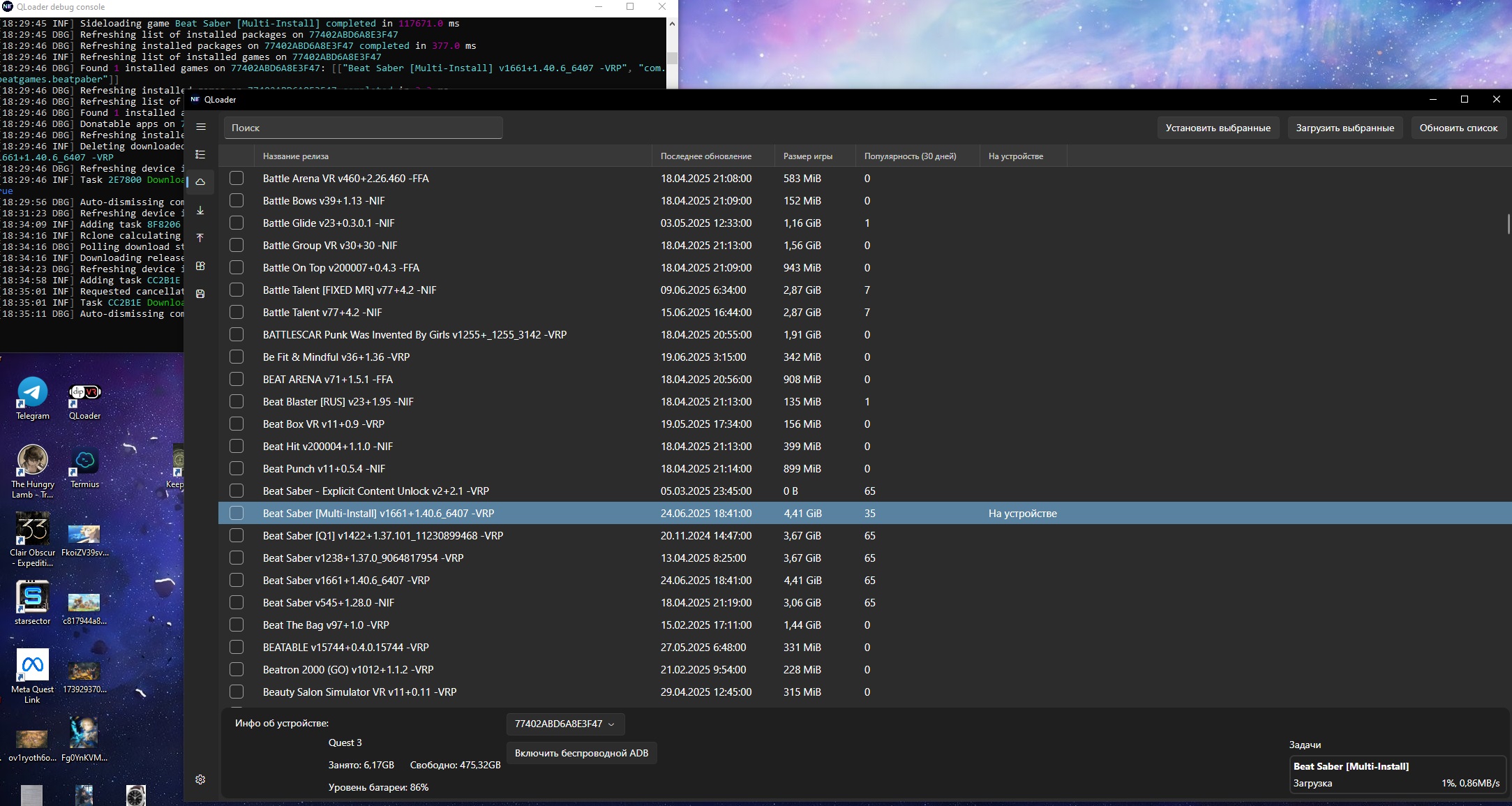Я может совсем тупой, но вот я скачал Бит сэйбр. Написано, что он на устройстве, а где он там? Или его теперь еще и установить надо, нажал на установить выбранное, оно начало качать файл заново(?) или жто оно так устанавливает?