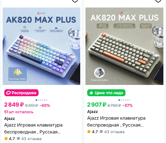 Кейкапы за 5к — толстый PBT, литые буквы, норм профиль, звук сочный. В дешёвых — крашеный ABS, буквы стираются, всё звенит как пустая бутылка.