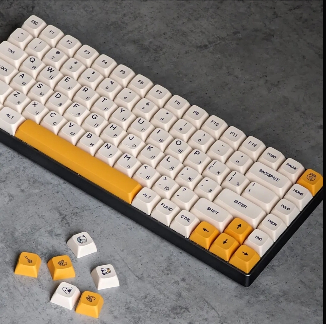 Порекомендуйте кейкапы с похожей цветовой гаммой, но чтобы буквы просвечивались и в идеале имели русскую раскладку. Во всём остальном пикрил устраивает