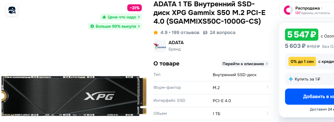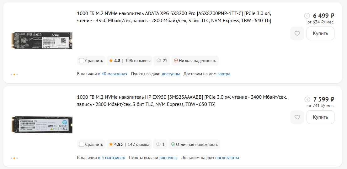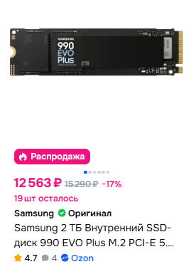 Короче шёл за отчественной М.2, купил в итоге от вьетнамских Коммунистов Samsung 1 Tb EVO 990 5000Mb/s дешевле наших русских SSD, я как инженер-электрик проектировщих не знаю как это контрить, так как Вьетнам дружественная коммунистическая страна, на 80 лет победы приезжал вождь Вьетнамских коммунистов. Наше русское SSD хуже по наработке на отказ и меленне по чтение/запись, так то планки тож рабочие, в руках держал наши.
