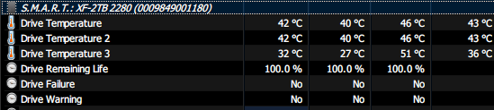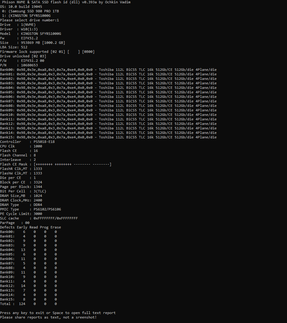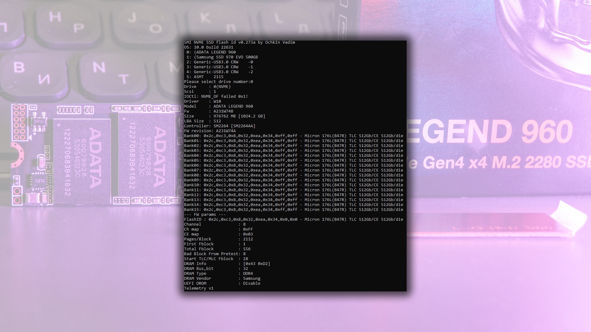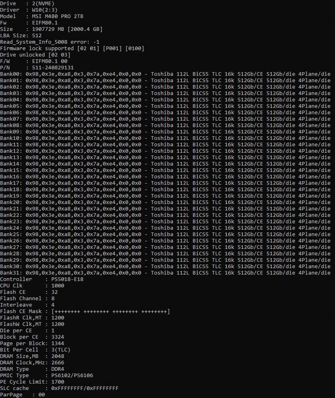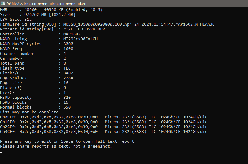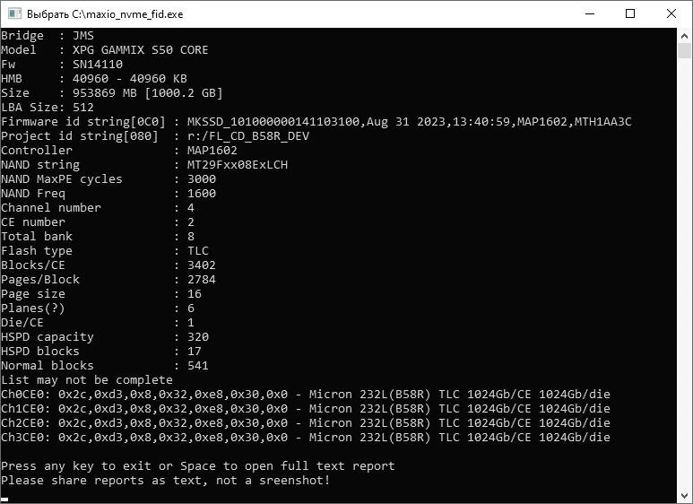 вот это поворот. у меня >>7423995 кончилось место на драмлесс хуйне >>7417245>>7440255 с поганым максио и гранулами янцзы и я решил взять другую с идентичным железом >>7411288 (OP) > • Lexar NM790/Fanxiang S790/Netac NV7000-t/Acer Predator GM7/HP FX900 Plus/ADATA Legend 900/Movespeed N7000/Asgard AN4+/Hikvision G4000/Kingspec XG7000/Digma Meta M6/Colorful CN700 Pro (PCI-E 4.0, YMTC TLC 232L, HMB, контроллер MAP1602) а именно Lexar NM790 а там вместо поганого максио внезапный писюн > c2:00.0 Non-Volatile memory controller: Phison Electronics Corporation PS5027-E27T PCIe4 NVMe Controller (DRAM-less) (rev 01) что за чипы памяти хз, винды под рукой нет а грузиться с WinPE влом а и ещё одно отличие: у этого лексара 1 датчик температуры вместо двух