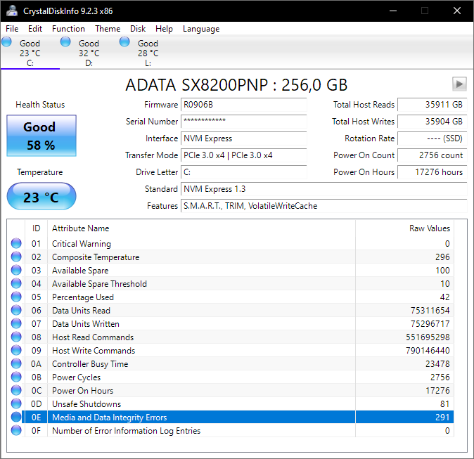>>7448797 Атрибут C5 сообщает, что с несколькими блоками флешки есть проблемы, но в остальном все в порядке.