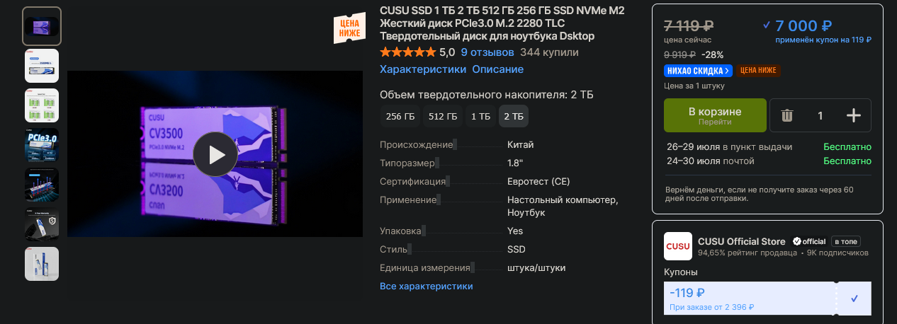 >>7416131 >а как бы есть ли реальный профит Нету. Но я бы все же посоветовал нихуй не связываться с б/у ссд, и купить безбуферник с твоего пика на озоне и с ним отдать комп.