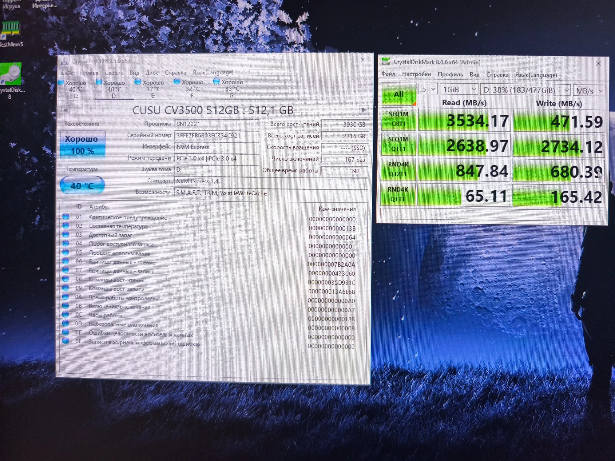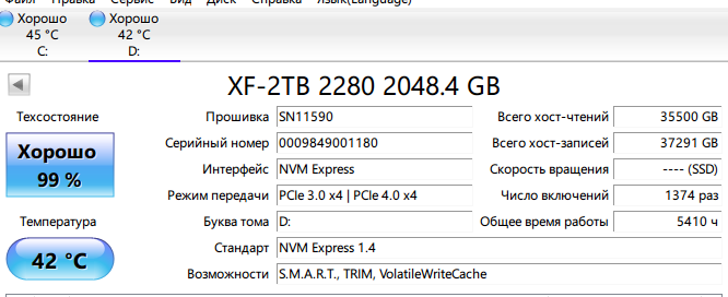 >>7416505 Хорошо я зашел смарт смотреть, у меня hdd умирает и временно на него мигрировал важными данными, тест аиды позже сделаю, кристал диск довольно заполненный выглядит так, когда на него с системного ссд копировал разное, он не отставал. Крч видимо остается у меня новый ссд, он неплох для нонейма, буду держать в курсе если че произойдет в ближайшее время