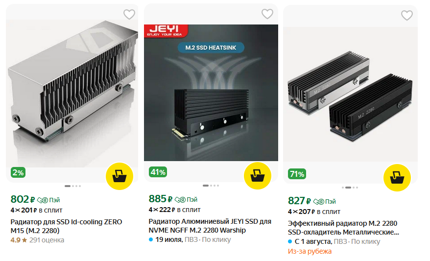 Вот выше по треду пишут что радиаторы на ссд стоит ставить только если ты трясун и без него нормальные температуры будут. Так вот то что у тебя как раз для трясунов и ссдшников которым и без радиатора нормально.