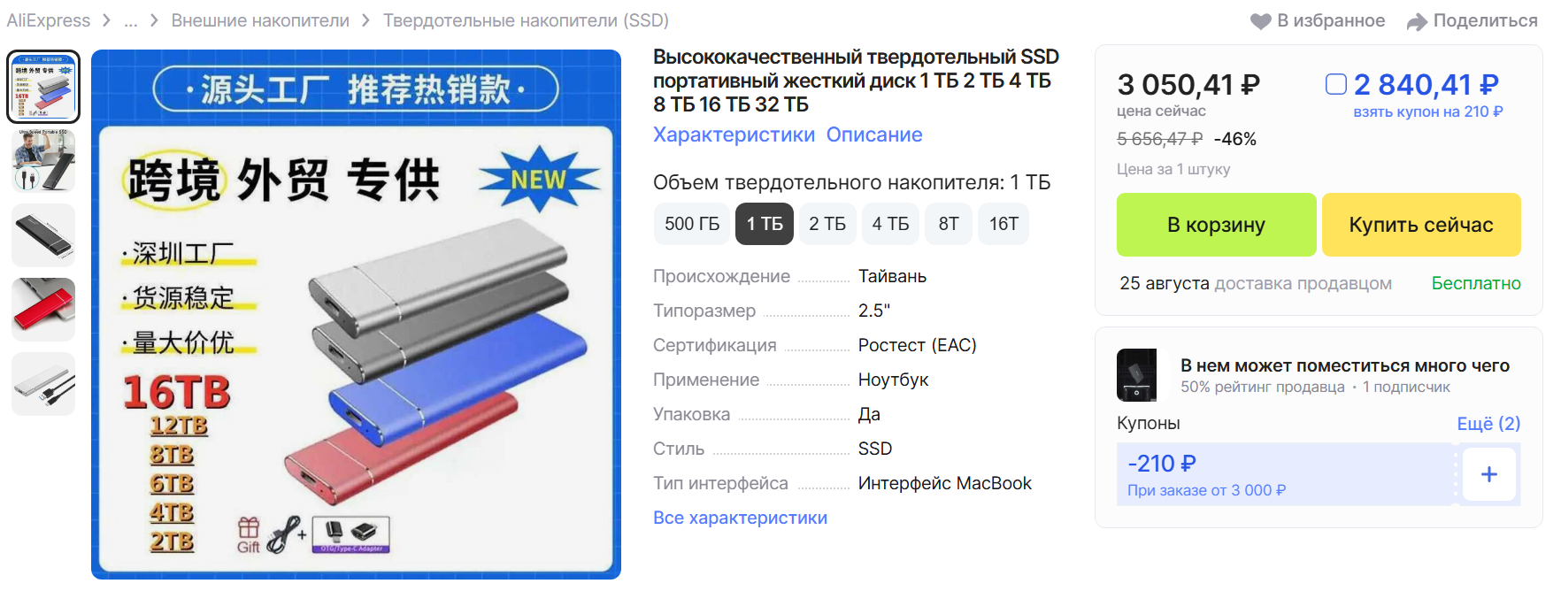 Сообщай в вопросе бюджет, нужный объём, интерфейс подключения и формфактор, сценарий использования, модель материнской платы.
