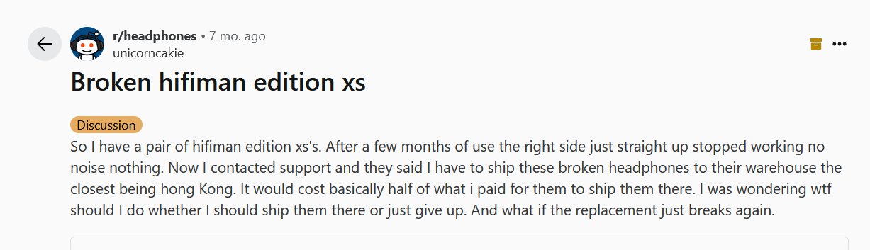 >>7436977 Такой еще вопрос. Сколько эти IEM китайские живут вообще? Полноразмерные, если ими не долбить об стол, только замену амбушюр требуют, с этими так же?