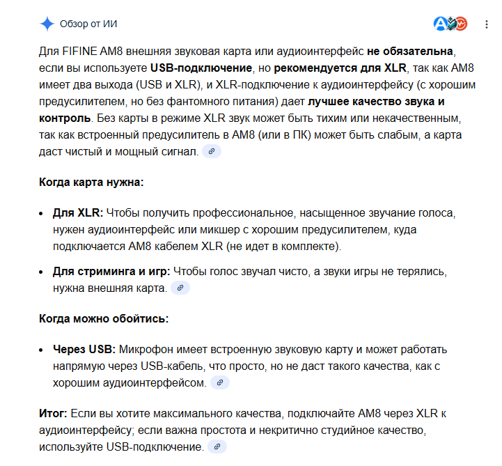 Нужен быстрый ответ, пока есть 7 часов до окончания распродажи на али. >fifine am8 Многие хайпят. Хочу микро для дискорда играть с кайфом в пати. Звуковухи отдельной нет. Норм тема? Или не хватит усиления? Или что? Или какие есть альтернативы под мои задачи? Наушники полноразмер без микрофона у меня.