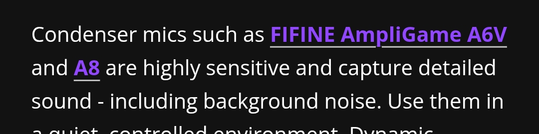 >>7654283 > хотя бы с k669b Так k669b это вообще кал. На ютубе есть обзоры, он во всех просто шумное говно, как BM800 с 1-долларовой аудиокартой. У меня fifine ampligame есть, звук как из бочки, верхних частот нет, нихуя нет, вообще звучит он так будто внутри установлен программный шумодав. Вообще после этой хуйни к fifine никакого доверия нет.