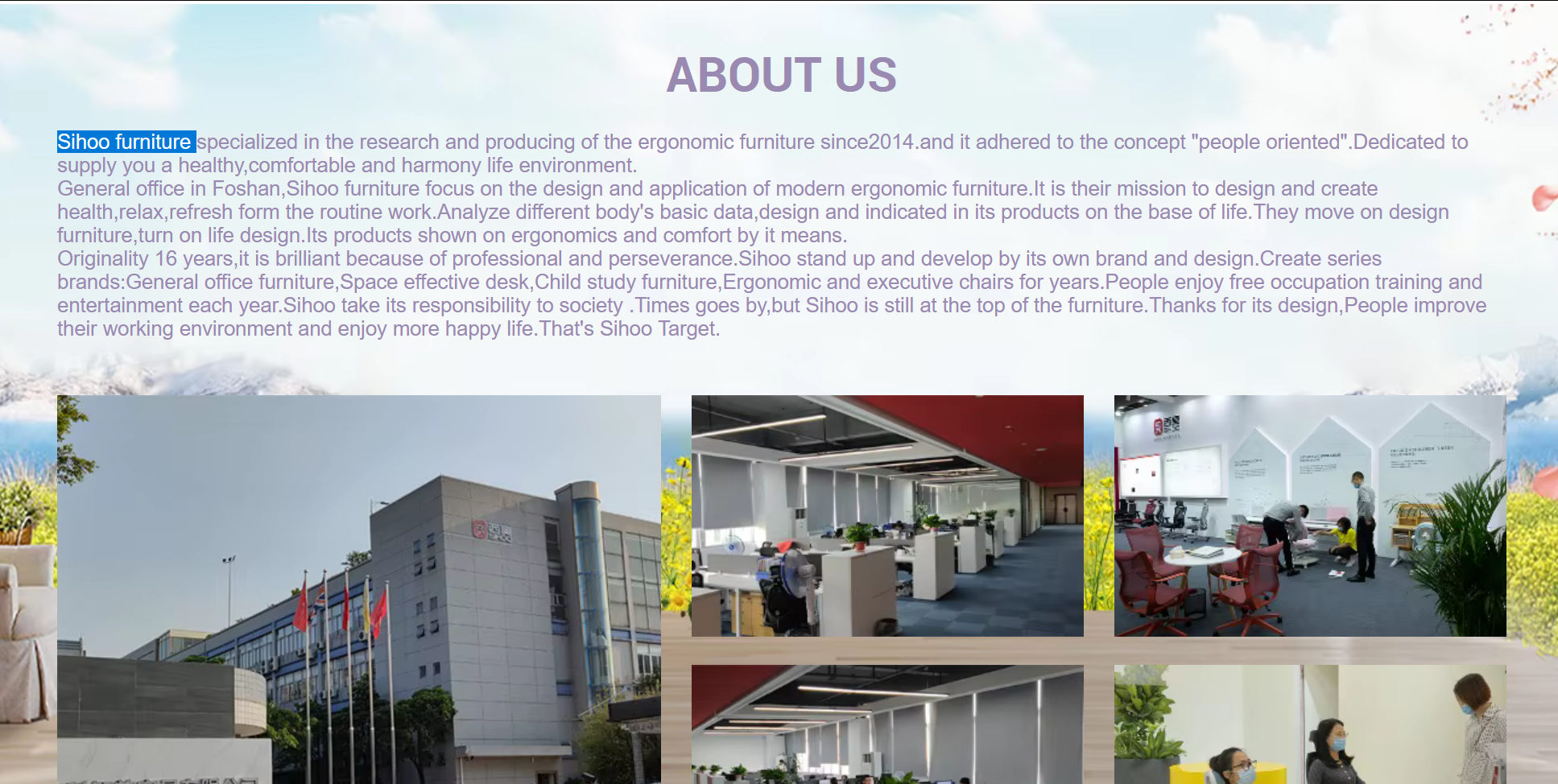 >>7427350 А на странице завода можешь примерно почувствовать ссылку на это кресло? Интересно получается. Завод с твоих слов никак не аффилирован с sihoo, но на странице завода вся продукция промаркировкана этой торговой маркой, и даже в контактах указаны контакты sihoo, а не контакты завода