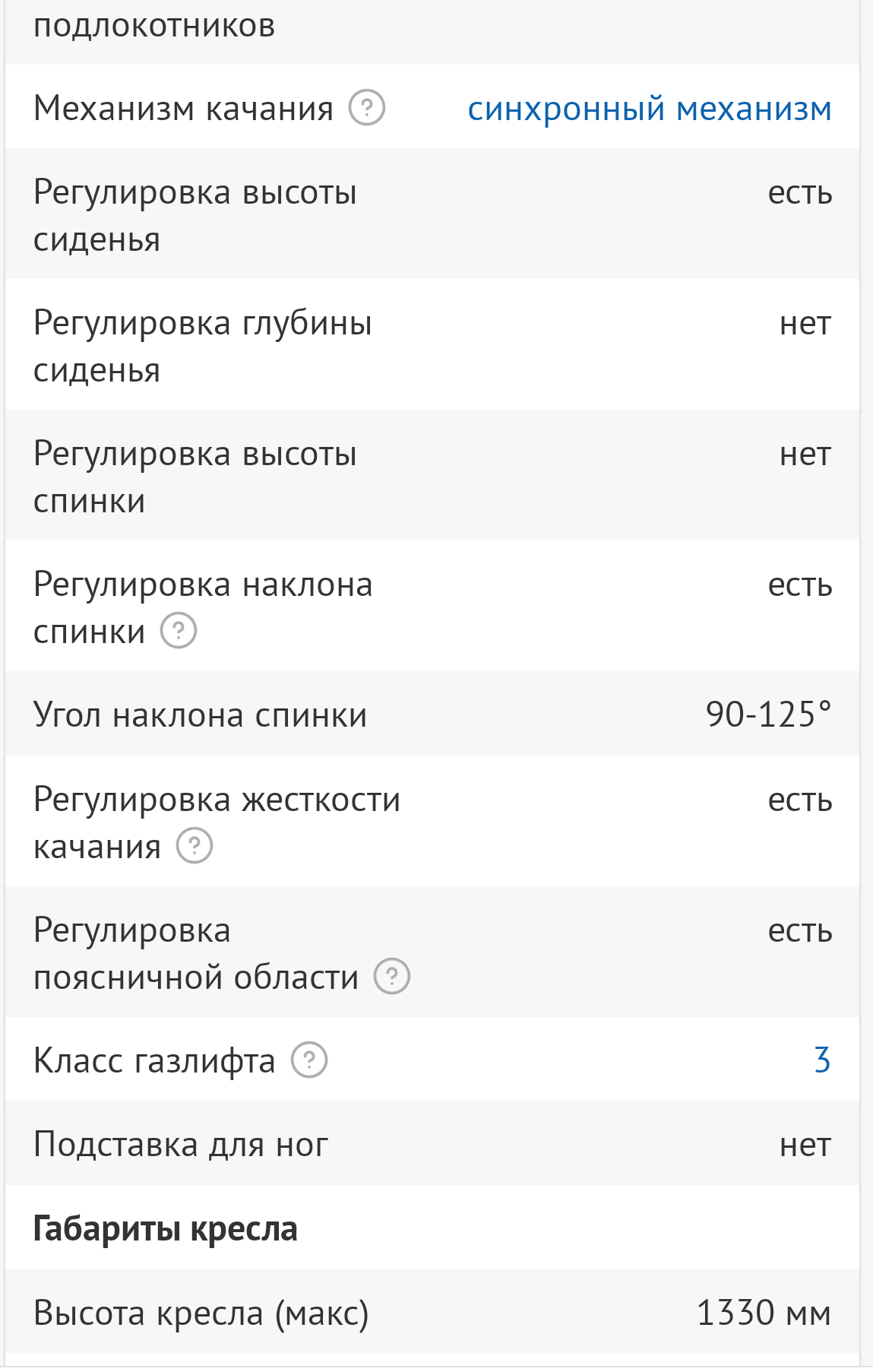 Короче если так подумать, выбор сильно сужается до эргономичных китайцев с регулировкой спинки и тканевым креслом с подушкой, и всякие мягкие кресла руководителя без всяких синхромеханизмов и прочих выебонов, зато не требующие регулировки высоты