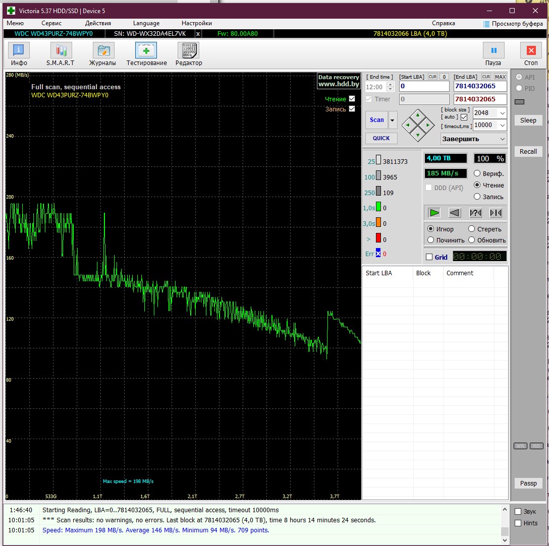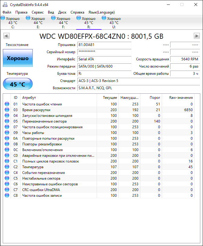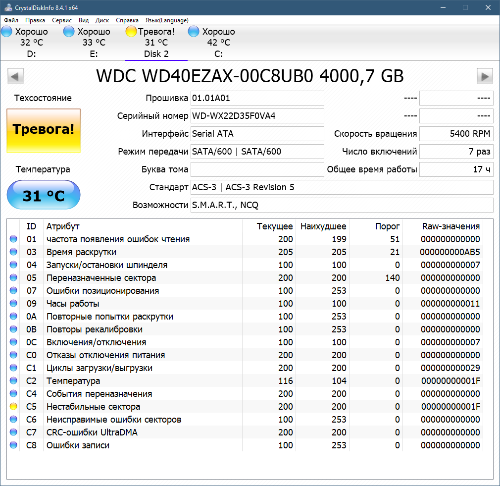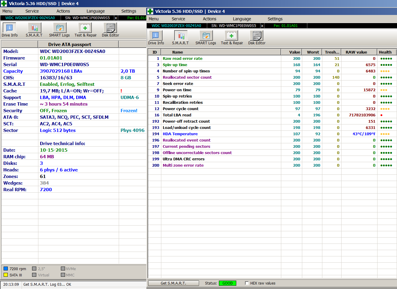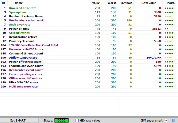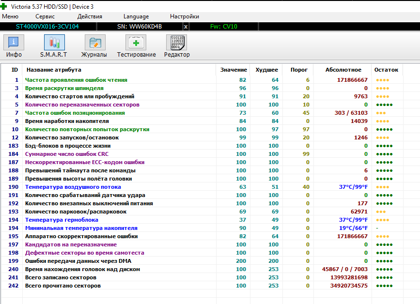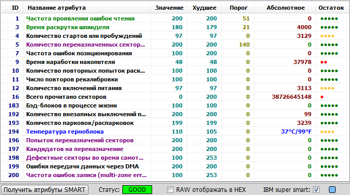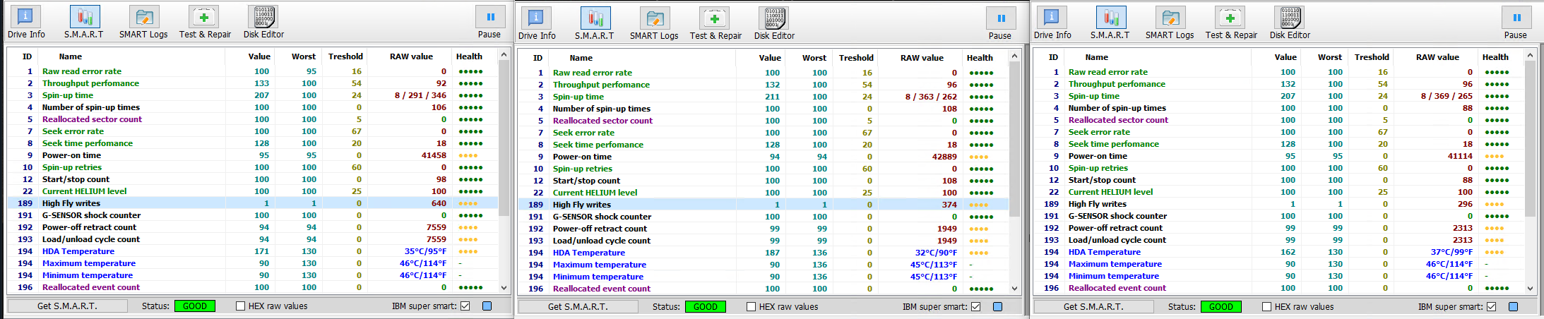 диску ровно 10 лет, но этот 43 градуса, а его брат близнец 39 диск упорно ебался на рид, не могло же много рида его наебнуть?)))))))) пока копирую 2 тб файлов, длу ваших советов. денег щас ваще нет, но он будет заменён на 4тб сата ссд и будет отдан под холодную помойку - так-то ещё лет 10 из него выжму?
