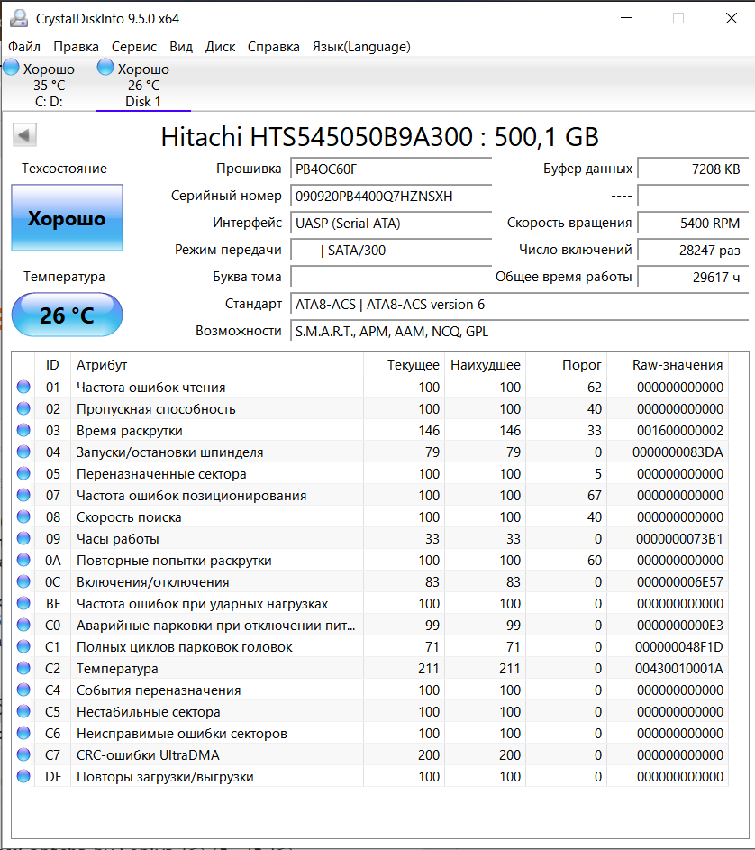 сап аноны, у малого на пк проблемы с количеством памяти (стоит один nvme на 512 гигабутов, да и тот почти забит). купил у кореша жёсткий диск от ноута хитачи 500гб сентября 2009 года. стоял в ноуте бабушки моего друга, но щас ноутом уже не пользуются, соответственно диск не нужен. сразу по-приезде домой его форматнул и проверил в кристал диск инфо и ахуел от наработки. есть ли смысл оставлять этот диск или лучше его обратно вернуть другу? заберёт без вопросов. денег пока не заплатил, думаю рублей 500-600 дать корешу за жесткач. вот так сейчас у него по характеристикам: