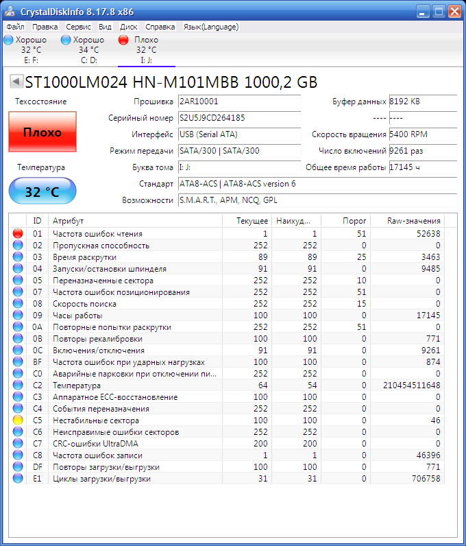 >>7423710 >А нахуй тебе это надо? Не зн, кликнул. Походу форматирование застряло на 48%, кристалдиск показывает пикрил 000000000DB3 raw value Seek Error Rate которое меняется при обновлении. Это он битый пришел?