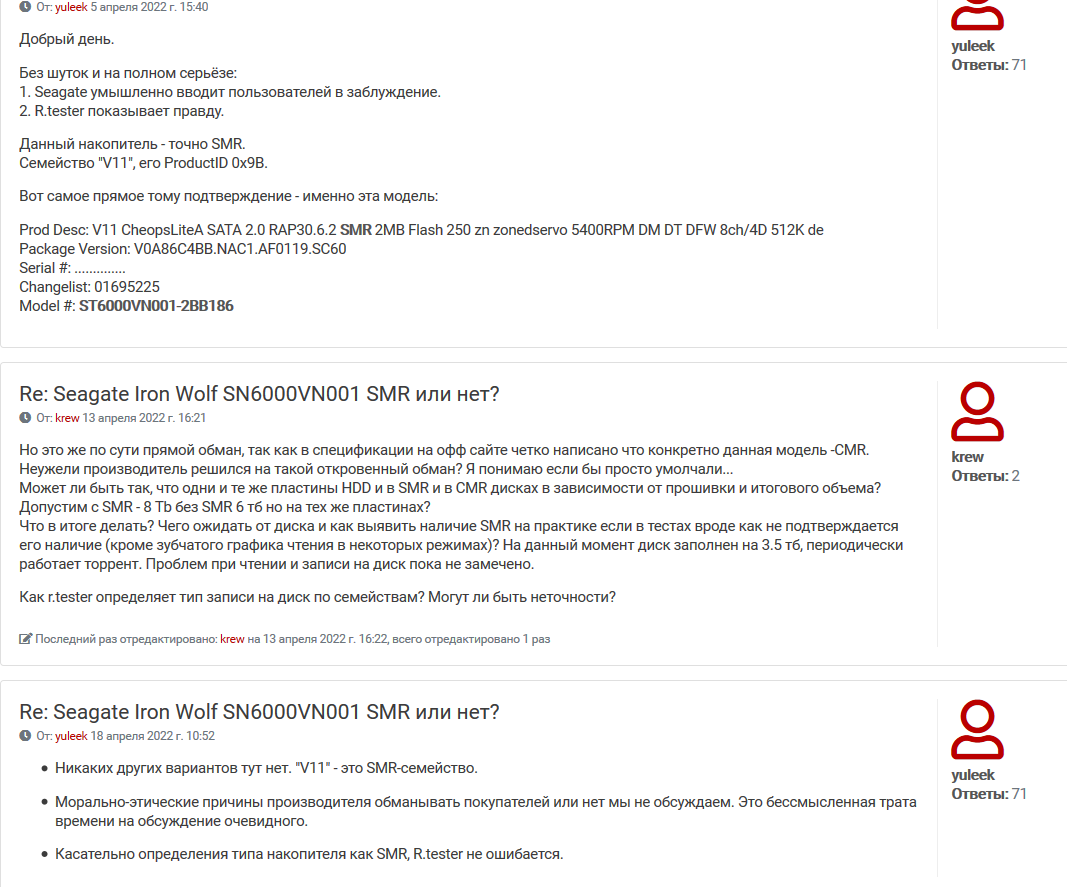 >>7474058 >8-18тб CMR Большие объемы почти все CMR 8тб еще бывают черепичные, например сиагетовские EXOS. Но начиная от 10тб черепица это только One Touch и баракуда, но покупать эти диски на 10 тб это тупизм полный. Так что просто смотришь любой диск на 10тб и выше кроме обозначенных и там будет CMR > с очень тихим PWL Поговаривают что у сиагейтов его можно отключать. У меня стоит 2 ультрастара HC550. На фоне работы вентиляторов их PWL можно услышать только если прямо начать вычленять звуки, желательно сидя рядом с компом. При этом кулеры достаточно тихие, вчера ночью при работающем пк расслышал звук крыльев маленького комара в 3 метрах от меня.
