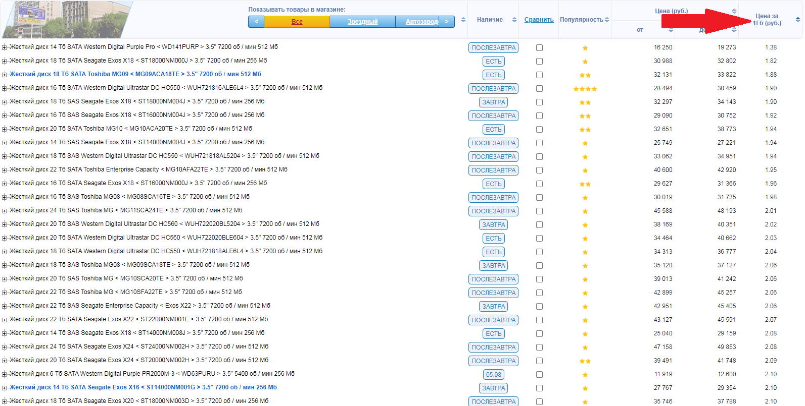 > Ориентируюсь на ~1гб/1руб. Будут диски, которые годятся только для полочного хранения.