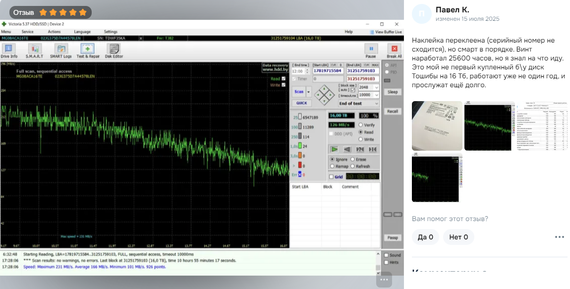 А как можно застраховать себя от покупки пали и б/у под видом нового, если даже ДНоС и говнолинк не брезгуют их продавать? Покупать через говнозон у говнолинка, чтобы можно было вернуть в течение недели без объяснения причин? Как раз этого времени хватит, чтобы потестить диск на реальный объём и бед–блоки.