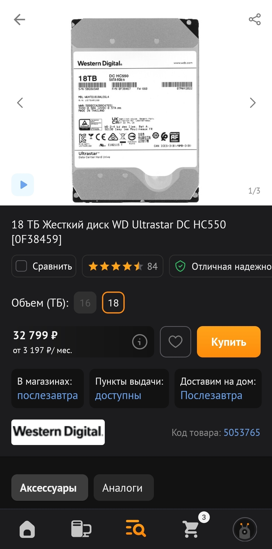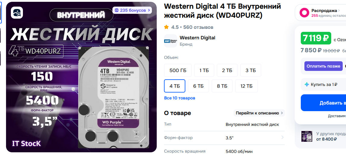 можно еще 4 тб версию и да, насчет вд перпл мне нет смысла врать, у нас он реально стоил 5-6 тысяч, но короткое время я даже хотел взять но в другом месте отговорили, типо диски бу с видеонаблюдения да и в самом днс есть такие отзывы
